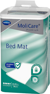 Absorpčné jadro z celulózy je zárukou vysokej absorpcie. Celý povrch je potiahnutý netkanou textíliou. Spodná strana je potiahnutá nekĺzavou a nepriepustnou fóliou, ktorá udržiava posteľnú bielizeň v suchu. Nekĺzavá spodná strana drží podložku na jednom mieste a zabraňuje jej šmýkaniu. Podložky MoliCare Bed Mat sa používajú ako sekundárna ochrana lôžka pre osoby s inkontinenciou.