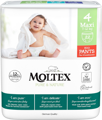 Moltex Pure & Nature Natiahnuté plienkové nohavičky Maxi 7–12 kg 22 ksVšetko o produkteDoplňujúce informácieHodnotenie produktuDermatologicky testované, šetrné k pokožke. Balenie plienok je vyrobené z plastu z cukrovej trstiny namiesto ropných plastov. Plienky sú nové vyrábané v Belgicku pri zachovaní nemeckej kvality.