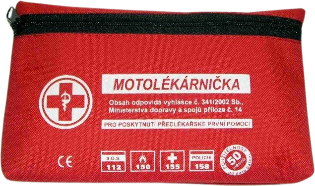 Motocyklová lekárnička v textilnom vyhotovení na poskytovanie prvej predlekárskej pomoci podľa vyhlášky č. 341/2002 Z. z. v znení vyhlášky č. 283/2009 Z. z., č. 216/2010 Z. z. a č. 182/2011 Z. z. Viac informácií