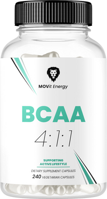 V doplnku stravy MOVit BCAA 4:1:1 je štvornásobné množstvo leucínu v porovnaní s izoleucínom a valínom. Tento špecifický pomer je považovaný za prospešný pre syntézu svalových bielkovín, regeneráciu a rast, pretože leucín je považovaný za najdôležitejšiu aminokyselinu na budovanie svalov.