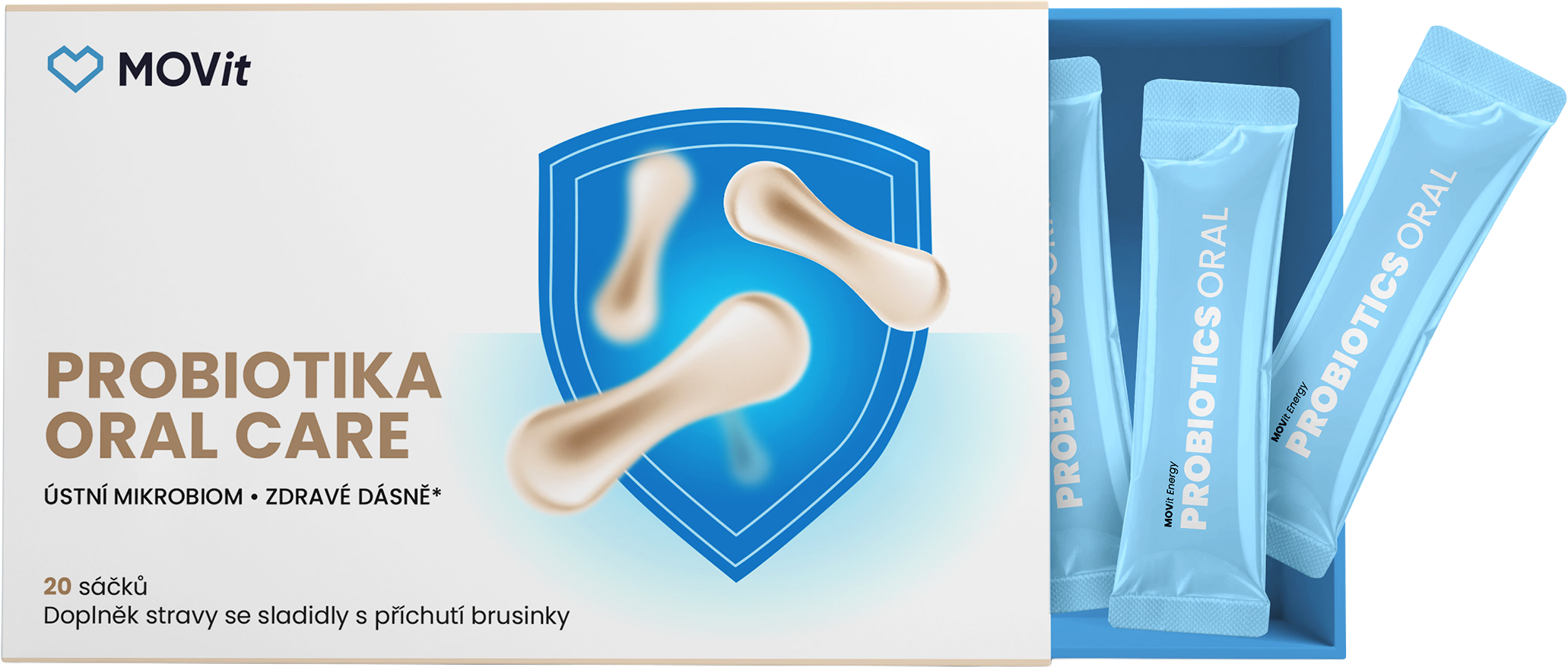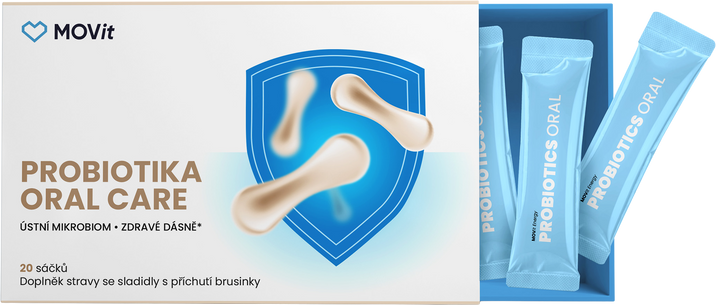 MOVit Probiotics ORAL CARE obsahuje dva kmene Streptococcus salivarius subsp. thermophilus (ST81 a ST27), z ktorých každý poskytuje 5 miliárd CFU denne. Zložky sa kombinujú s rozpustnou vlákninou (inulín, rezistentný dextrín, FOS), brusnicovým práškom a vitamínom C a vytvárajú komplexný prípravok, ktorý pôsobí tam, kde je to potrebné - v ústach.