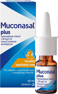 Muconasal® plus je liek na vstrekovanie do nosa na úľavu od upchatého nosa pri bežných prechladnutiach a pri sennej nádche. Obsahuje tramazolínium-chlorid. Pozorne si prečítajte písomnú informáciu pre používateľa.