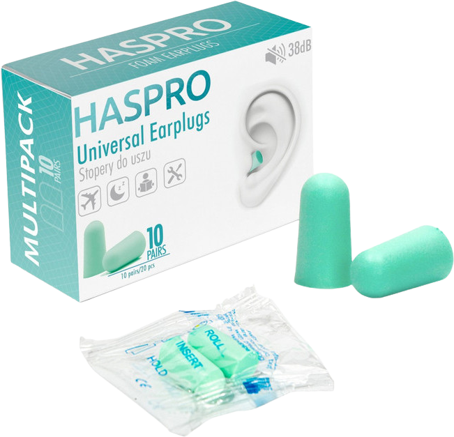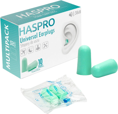 Haspro Multi10 obsahuje 10 párov (20 ks) zátkových chráničov sluchu z veľmi mäkkej peny s vysokým SNR 38 dB. Viac informácií