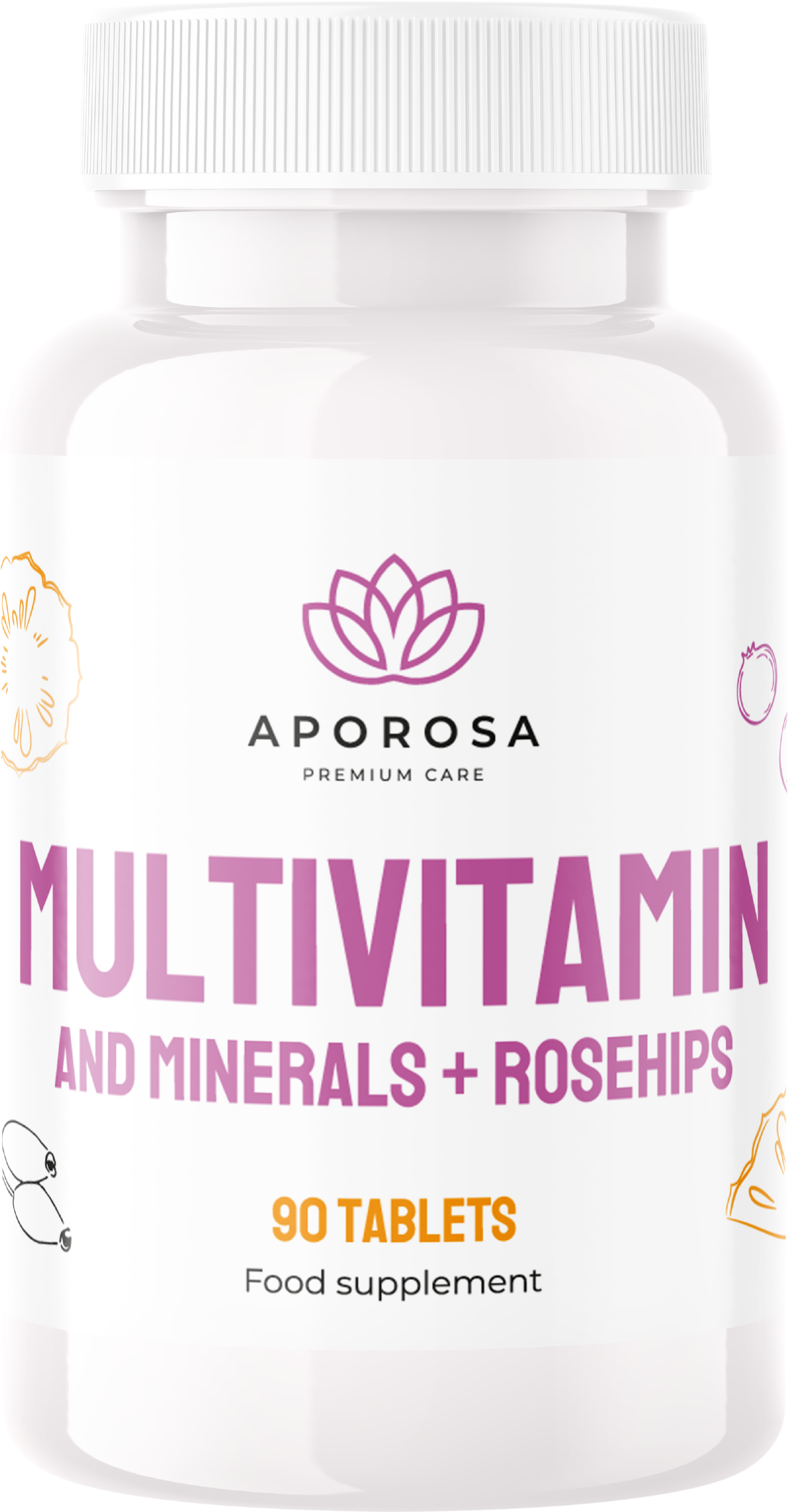 Bezhlavé hľadanie viacerých vitamínov a minerálov, ktoré potrebujete, môže byť náročná úloha. Čo tak mať všetko potrebné v jednom? Multivitamín Aporosa obsahuje nielen väčšinu vitamínov, ale aj súbor vhodných minerálov na čo najlepšie posilnenie telesných funkcií. Obsahuje primerané množstvo vitamínu C s výťažkom zo šípok, ktorý účinne podporuje vašu imunitu a pomáha predchádzať nevysvetliteľným návalom únavy. Prítomné sú aj vitamíny A, D, K a B-komplex vrátane významného množstva minerálov, ako sú vápnik, horčík a jód.