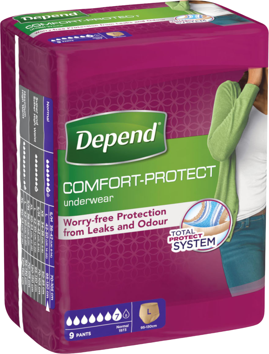 Skúste tiež ďalšie výrobky značky Depend, ktoré nájdete v kategóriách Inkontinenčné nohavičky, Inkontinencia a Zdravotnícky materiál. Výrobok zrecenzovalo 6 zákazníkov a 100 % z nich ho odporúča. Depend Naťahovacie nohavičky ® Normal L pre ženy 9ks je registrovaný v databáze ŠUKL pod kódom B69200. Ak si nie ste istí výberom tohto produktu, inšpirujte sa v kategórii Inkontinenčné nohavičky.