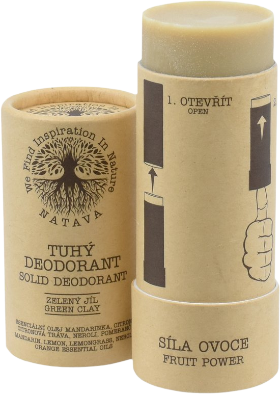 Natava tuhý dezodorant bez obsahu sódy bikarbóny chráni pred nežiaducim pachom, ale zároveň nezabraňuje prirodzenému poteniu. Originálna receptúra je obohatená o esenciálne oleje niekoľkých citrusov, neroli a citrónovej trávy, ktoré deodorantu dodávajú sviežu ovocnú vôňu s vyložene aromaterapeutickými účinkami. Viac informácií