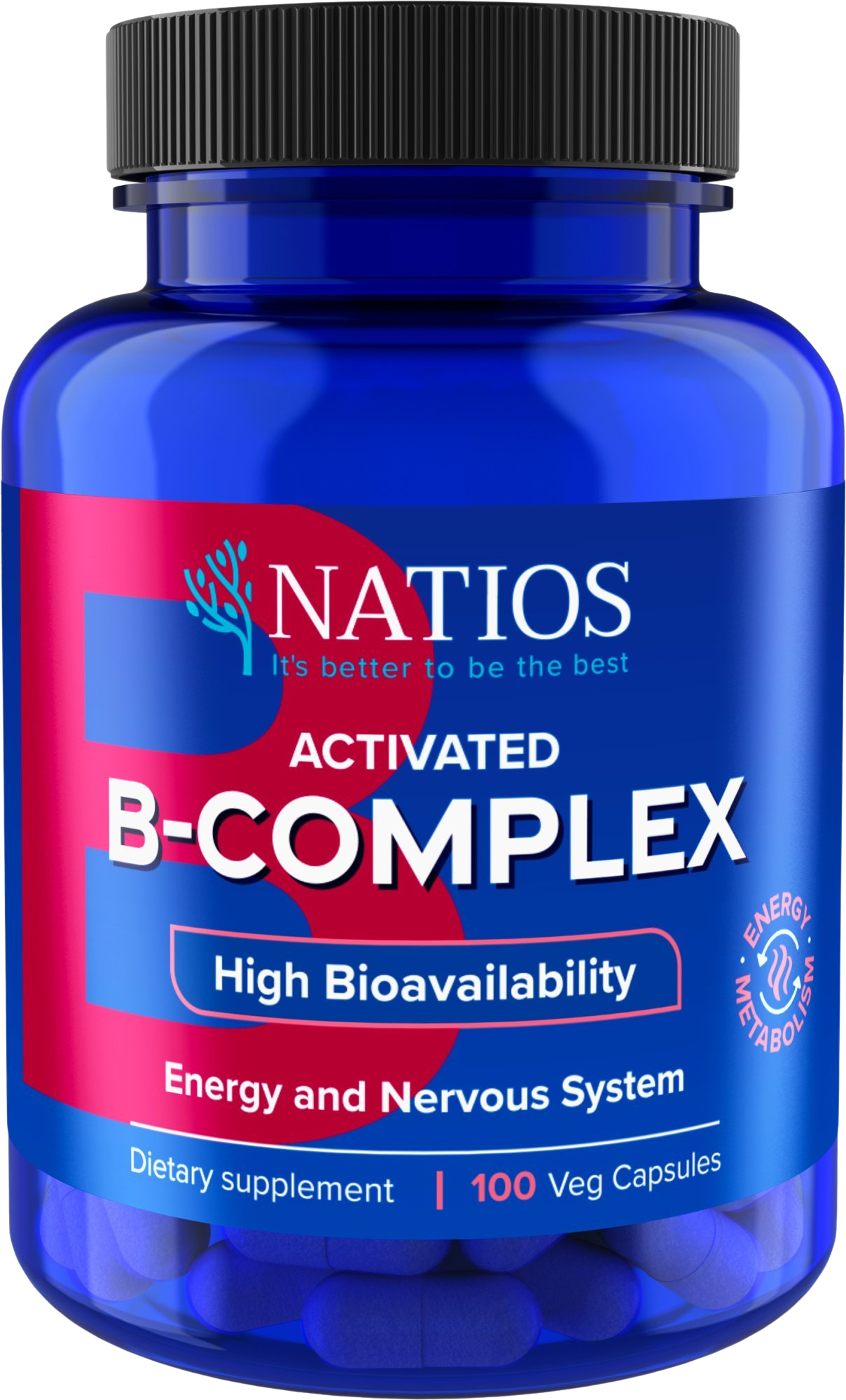 Natios Activated B-Complex je spôsob doplnenia vitamínov skupiny B. Obsahuje iba biologicky aktívne formy vitamínov skupiny B. Aktívne formy sú pre telo oveľa ľahšie využiteľné a vstrebateľné. Tento komplex obsahuje synergickú zmes 16 zložiek. Okrem bežných vitamínov skupiny B je doplnený aj o kyselinu alfa-lipoovú, betaín, vitamín C, horčík, PABA a koenzým Q10. Vďaka týmto zložkám sú účinky B-komplexu ešte silnejšie. To všetko v najlepšej možnej forme, bez prídavných látok a plnidiel a v rastlinnej kapsule vhodnej aj pre vegánov.