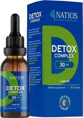 Natios Detox Complex, Bylinné kvapky v MCT oleji 30 mlVšetko o produkteDoplňujúce informácieHodnotenie produktuNatyos bylinné kvapky sú vyrobené zo silných extraktov a sú dodávané v MCT oleji. Nejde teda len o klasické alkoholové nálevy, ale o koncentrované extrakty bez zbytočnej chémie, ktoré sú šetrné k žalúdku, majú jemnú chuť a zároveň poskytujú maximálny účinok.