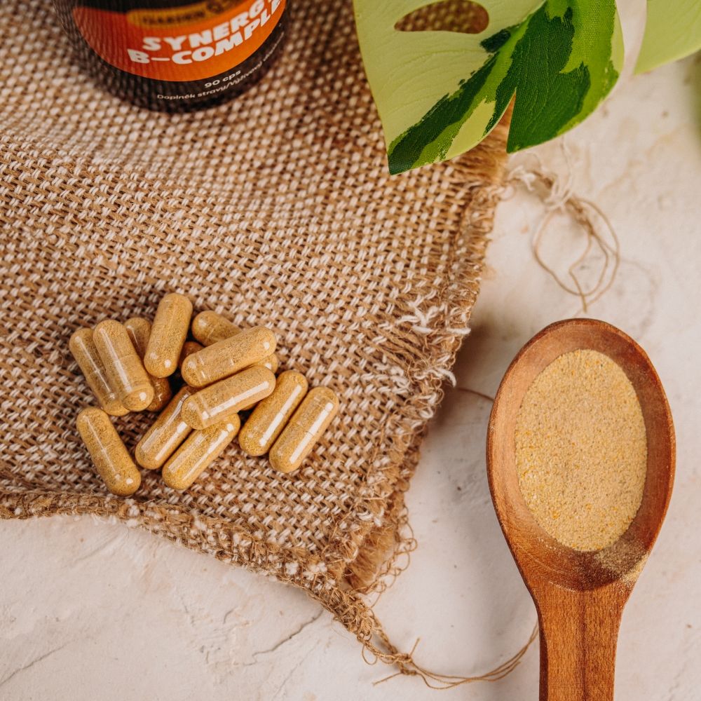 - Vitamín B12 (metylkobalamín) – bioaktívna forma, ktorá podporuje tvorbu červených krviniek, činnosť nervového systému a energetický metabolizmus.