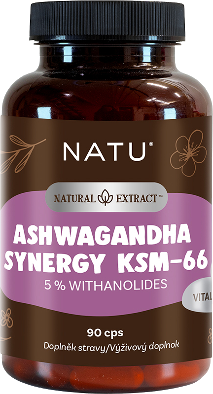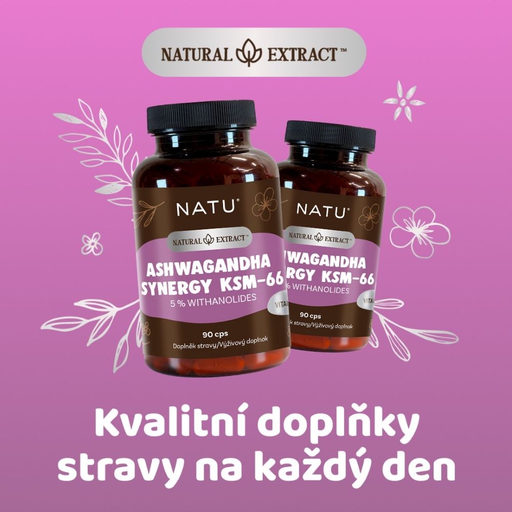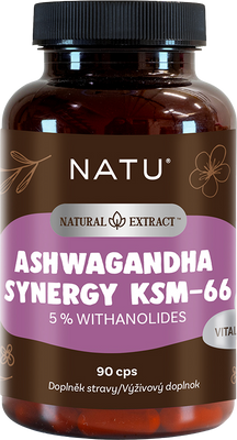 Natu Natural Extract, Ashwagandha extrakt KSM-66 (5% withanolidov) s piperinom 90 kapsúlVšetko o produkteDoplňujúce informácieHodnotenie produktuAshwagandha alebo vitania snodar je jednou z najuznávanejších bylín ajurvédy s tisícročnou tradíciou. Každá kapsula obsahuje 500 mg štandardizovaného extraktu KSM-66® (obsahuje ~5 % withanolidov) a 5 mg piperínu, ktorý zvyšuje biologickú dostupnosť a podporuje rýchlejšie a účinnejšie vstrebávanie účinných látok.