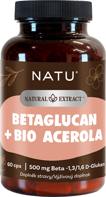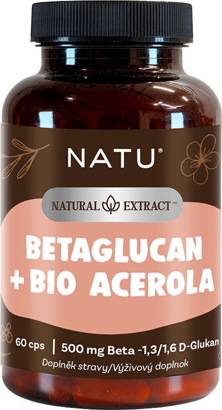 Natu Natural Extract, BetaGlukan 500 mg s BIO acerolou 60 kapsúlVšetko o produkteDoplňujúce informácieHodnotenie produktuBetaGlucan 500 mg s BIO acerolou prináša jednu z najvyšších dávok kvasinkového beta-glukánu na trhu. Každá kapsula obsahuje 666 mg extraktu z kvasiniek Saccharomyces cerevisiae – najvyššiu dávku, akú možno do kapsuly vložiť. Z toho 500 mg je čistý aktívny 1,3/1,6-ß-glukán. V kombinácii s prírodným vitamínom C z organickej aceroly účinne podporí vašu vrodenú a získanú imunitu. Čisté zložky, vegánske kapsuly a maximálny účinok — keď vaša imunita potrebuje spoľahlivú podporu.