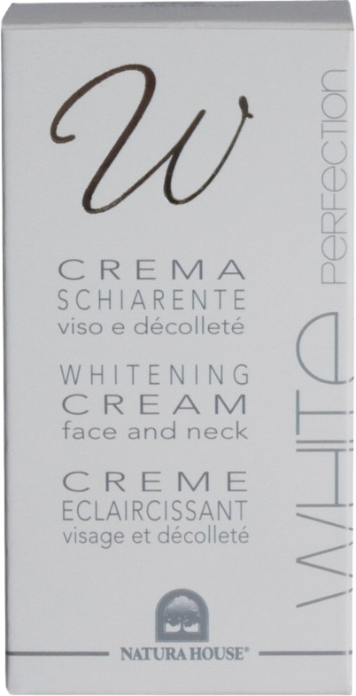 Natura House WHITE PERFECTION Bieliaci krém na tvár a dekolt, proti pigmentovým škvrnám 50 mlVšetko o produkteDoplňujúce informácieHodnotenie produktuVýskumné laboratória Natura House vyvinuli nový, účinný a jemný bieliaci krém na tvár a dekolt, ktorý je určený na korekciu - úpravu nerovnomernej pigmentácie pleti.