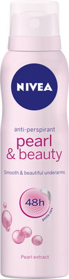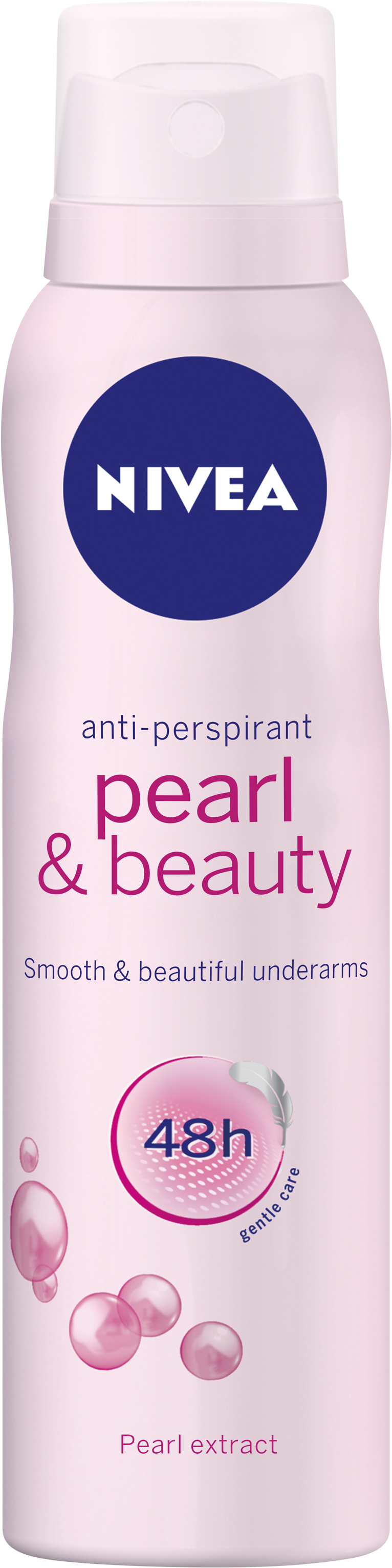NIVEA Pearl & Beauty antiperspirant v spreji s cennými výťažkami z perál účinne reguluje potenie a stará sa o pokožku podpazušia počas 48 hodín.