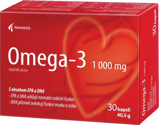 Noventis Omega-3, 1000mg pre zdravé srdce a cievy 30 kapsúlVšetko o produkteDoplňujúce informácieHodnotenie produktuProspešný účinok na správnu funkciu srdca sa dosahuje pri dennom príjme 250 mg EPA a DHA. Priaznivý účinok pre správnu funkciu mozgu a zraku sa dosiahne pri dennom príjme 250 mg DHA.