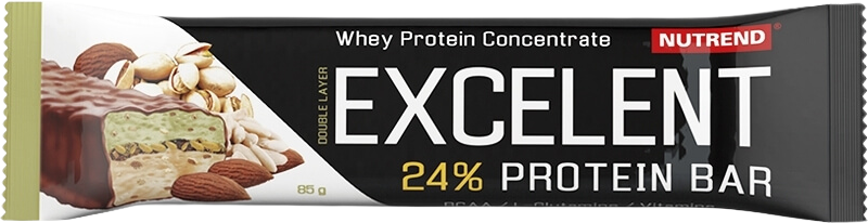 Dvojvrstvová proteínová tyčinka EXCELENT PROTEIN BAR DOUBLE je posypaná ovocím alebo orieškami a zaliata v čokoláde. Obsahuje 24 % bielkovín, 43 % sacharidov a účinné látky pre regeneráciu svalstva. Viac informácií