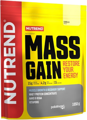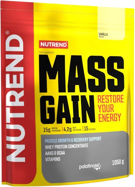 Bielkovinovú zložku tu tvorí 100 % WPC (srvátkový proteínový koncentrát) a plnohodnotný sacharidový komplex je zložený z niekoľkých druhov sacharidov, medzi ktorými možno nájsť disacharid izomaltulózu (PalatinoseTM) s nízkym glykemickým indexom, glukózu, maltodextrín a fruktózu. MASS GAIN sa môže používať po náročnej fyzickej aktivite na doplnenie zásob glykogénu, ale aj ako posledné ľahké jedlo pred náročnou fyzickou aktivitou. Účinnosť tohto výrobku je zabezpečená aj vďaka obohateniu o AAKG, taurín, BCAA, L-glutamín a zmes vitamínov.