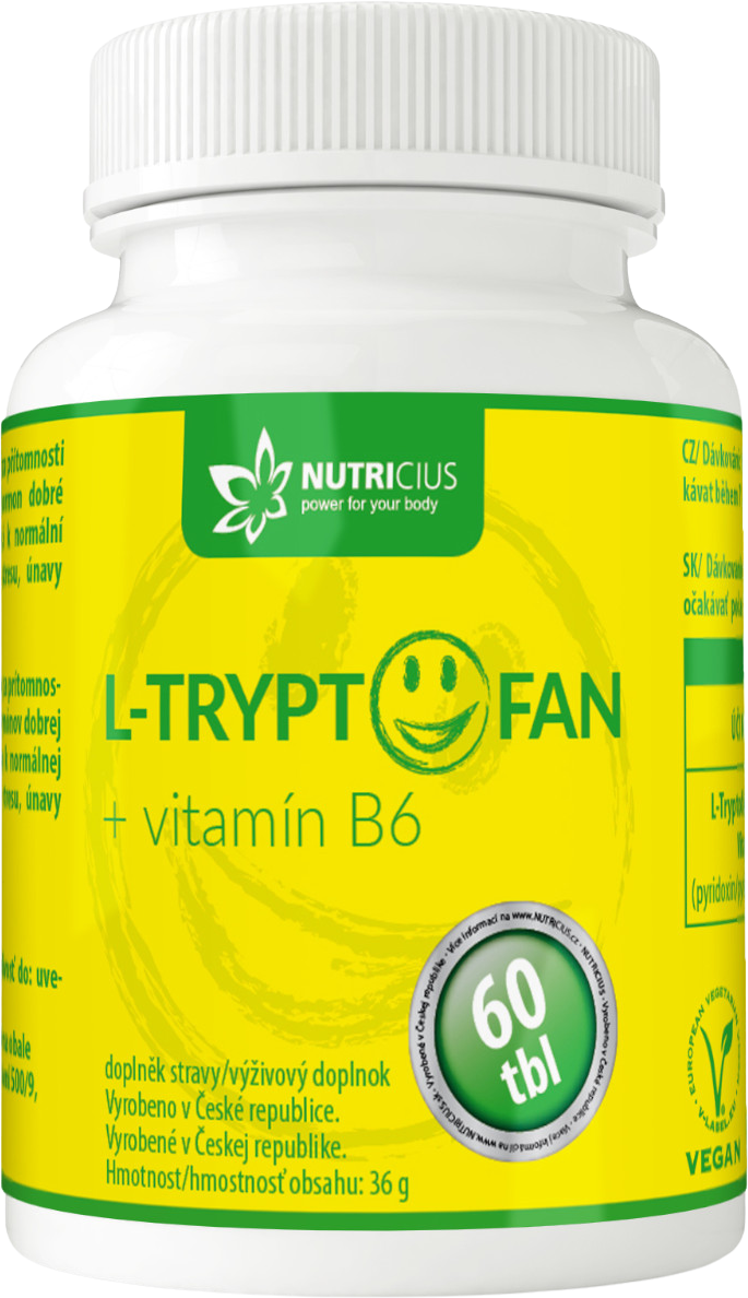 Výživový doplnok s obsahom esenciálnej aminokyseliny L-tryptofán a vitamínu B6. 200mg L – Tryptofan v jednej tablete a 2,5mg vitamín B6 (pyridoxín hydrochlorid) v jednej tablete, čo zodpovedá 178,5% odporúčanej dennej dávky. Viac informácií