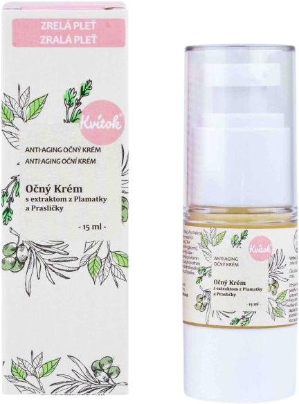 Pozrite tiež ostatné produkty značky Kvitok, ktoré sú v kategóriách Kozmetika, Okolie očí a Starostlivosť o pleť. Ak si nie ste istí výberom tohto produktu, inšpirujte sa v kategórii Prírodné očné krémy.