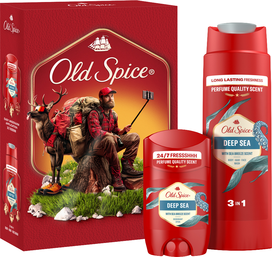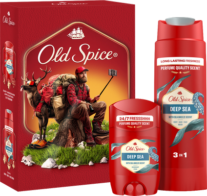 Vianočná darčeková súprava Old Spice Deep Sea je dokonalým darčekom pre mužov, ktorí milujú sviežosť a dobrodružstvo. Táto súprava obsahuje tuhý dezodorant a sprchový gél s jedinečnou vôňou Deep Sea, ktorá kombinuje tóny morského vánku, rozkvitnutých kvetov a šťavnatých citrusových plodov. Elegantné balenie s motívom outdoorového prieskumníka.