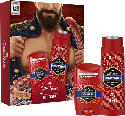 Old Spice Darčeková sada s tuhým dezodorantom a sprchovým gélom s tónmi santalového dreva a citrusovVšetko o produkteDoplňujúce informácieHodnotenie produktuKaždého moderného muža poteší darčeková sada OLD SPICE Dark Captain Set. Neodolateľná mužná vôňa v tuhom dezodorante a sprchovom géle je balená v darčekovej krabičke s dizajnom temného piráta. Súprava OLD SPICE Dark Captain Set je vhodná ako pri športovej námahe, tak pri dobrodružných výletoch. Je charakteristická vôňou santalového dreva a otvoreného oceánu.