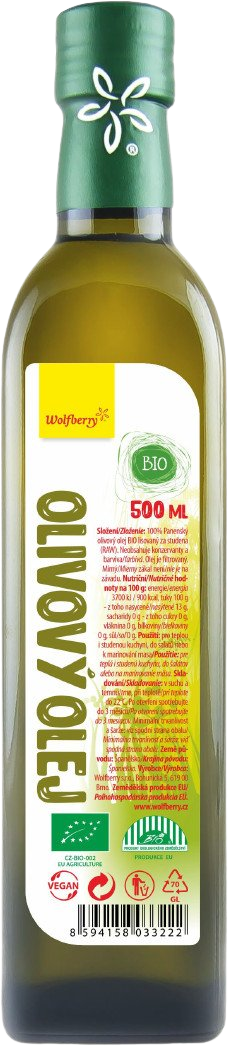 Wolfberry panenský olivový olej je lisovaný za studena pri teplotách nižších ako 27°C. Tým je v ňom zachovaný obzvlášť vysoký podiel prírodných antioxidantov, ktoré sú prítomné v olivách. Olej je dovážaný z Talianska, má plnú chuť a je v BIO a RAW kvalite.