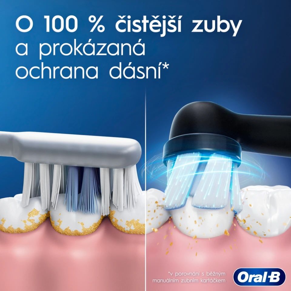 - O 100 % čistejšie zuby v porovnaní s bežnou manuálnou zubnou kefkou vďaka technológii oral-b io: nekompromisná k zubom, šetrná k ďasnám