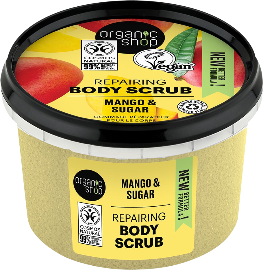 Prírodný regeneračný telový peeling s organickým výťažkom z manga a prírodným cukrom na starostlivosť o pokožku. Viac informácií