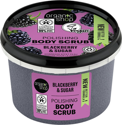 Organic Shop Vyhladzujúci telový peeling Ostružina a cukor 250 mlVšetko o produkteDoplňujúce informácieHodnotenie produktuOrganic Shop prírodný vyhladzujúci telový peeling s výťažkom z organických ostružín a prírodným cukrom na starostlivosť o pokožku. Nechajte sa rozmaznávať týmto zjemňujúcim telovým peelingom, ktorý zanechá vašu pokožku hebkú na dotyk. Organický extrakt z ostružín s vysokou výživnou hodnotou zanechá vašu pokožku hodvábnejšiu a hladšiu, zatiaľ čo cukor ju jemne exfoliuje.
