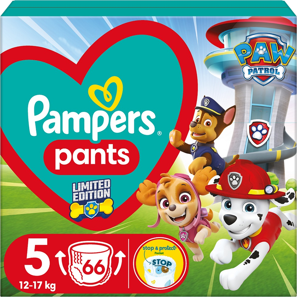 Pampers Active Baby Pants Paw Patrol Plienky nohavičkové vel. 5, 66 ksVšetko o produkteDoplňujúce informácieHodnotenie produktuKomfortná ochrana 360 ° FIT vás oboch zachráni pred pretečením. Plienkové nohavičky Pampers Pants z limitovanej edície Paw Patrol s obrázkami vašich obľúbených postavičiek z tímu Tlapkové patroly! Okrem komfortnej ochrany 360 ° Fit majú naše plienkové nohavičky Pampers Pants Paw Patrol aj revolučné vrecko Stop & Protect, ktoré pomáha predchádzať pretečeniu vzadu.