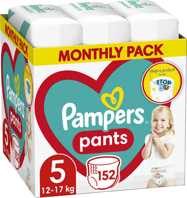 Majú jedinečné vrecko Stop & Protect, ktoré spolu s dokonale padnúcim pružným pásom poskytuje až 12 hodín úplnej ochrany proti pretečeniu. Majú tiež super absorpčné jadro, ktoré okamžite absorbuje tekutinu, a dvojité bezpečnostné manžetky, ktoré pomáhajú predchádzať pretečeniu okolo nožičiek. Plienkové nohavičky Pampers Pants sú dermatologicky testované a neobsahujú žiadne parfémy klasifikované ako alergény (uvedené v smernici EU č. 1223/2009 o kozmetických prípravkoch). Sú schválené dermatológmi z organizácie Skin Health Alliance ako bezpečné v kontakte s detskou pokožkou.