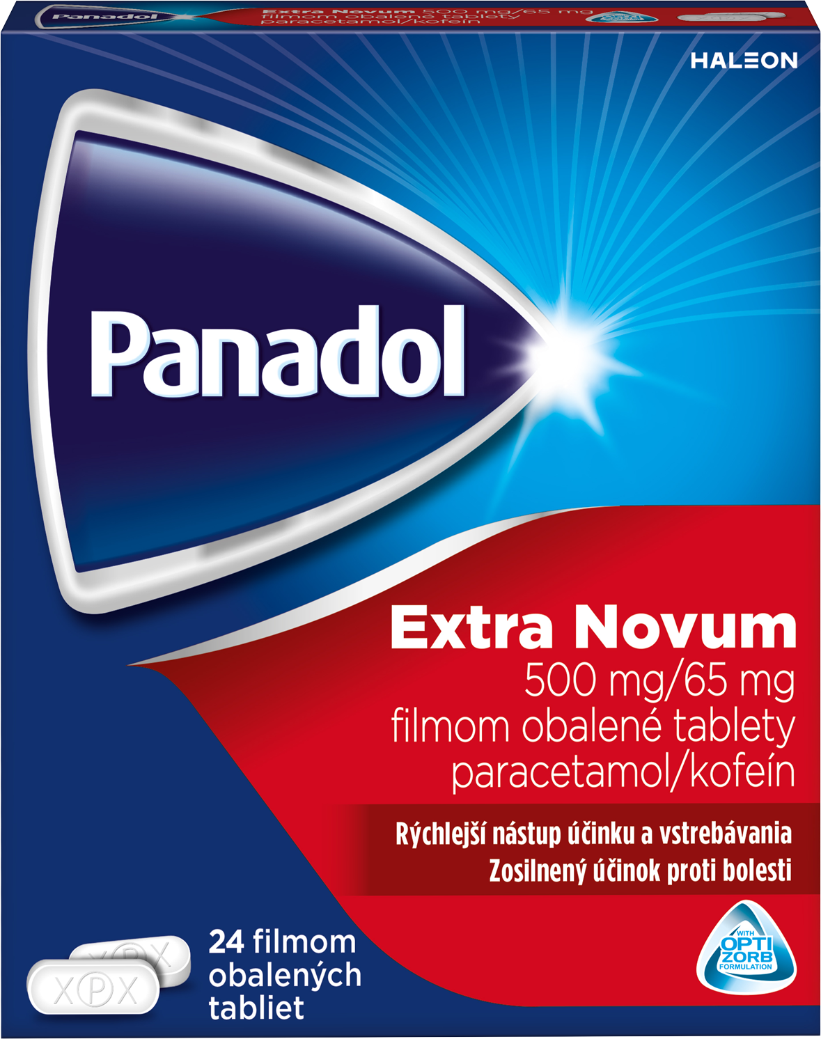 Panadol Extra Novum je liek proti miernej až stredne silnej bolesti. Toto analgetikum pomáha zmierniť rôzne typy bolesti ako bolesť hlavy vrátane migrény, zubov, bolest chrbta tak menštruačné bolesti, rovnako ako bolesť v krku pri chrípke a prechladnutí. Vďaka pridanému kofeínu a technológii Optizorb poskytuje účinnejšiu úľavu od bolesti a vďaka technológii Optizorb sa rýcheljšie rozpadá a preto je pripravený začať pôsobiť už o 5 minút. Viac informácií