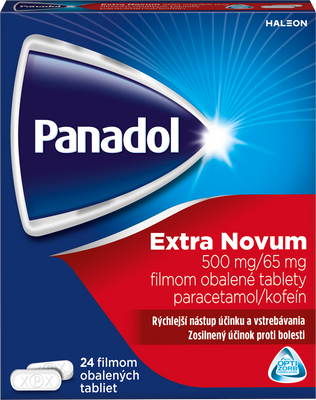 Pozorne si prečítajte poučenie o správnom používaní lieku obsiahnuté v písomnej informácii pre používateľa, ktorá je pribalená k lieku. Panadol Extra 500 mg/65 mg filmom obalené tablety je liek na vnútorné použitie. Obsahuje paracetamol.