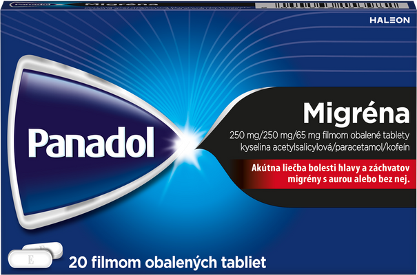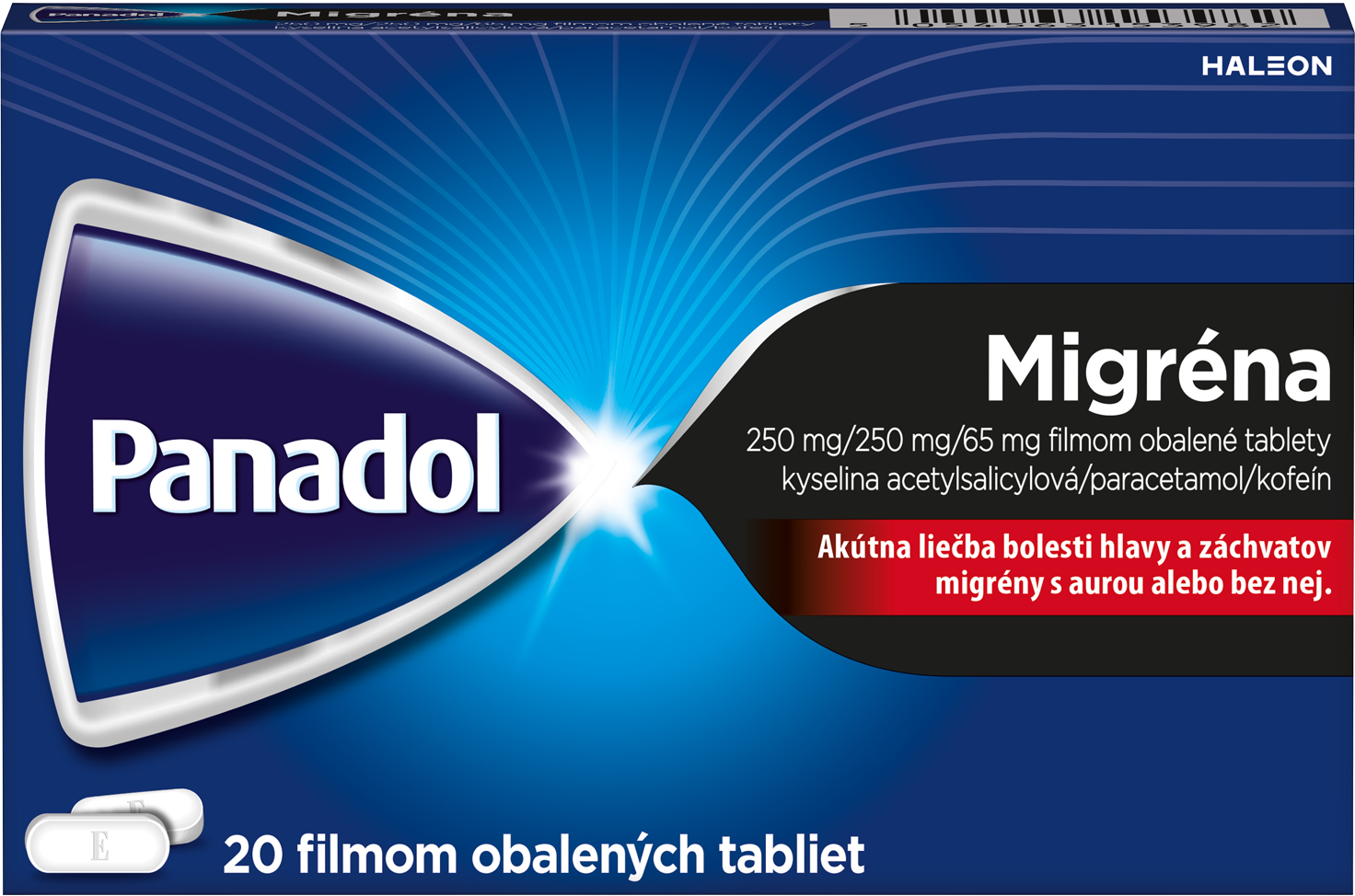 Panadol Migréna je analgetikum, ktoré vďaka kombinácii dvoch liekov proti bolesti a kofeínu (pre zvýšenie účinnosti) uľavuje od migrény do 30 minút. Tento liek účinne zmierňuje akútne bolesti hlavy, zmierňuje záchvaty migrény a zmierňuje rôzne iné príznaky migrény. Viac informácií