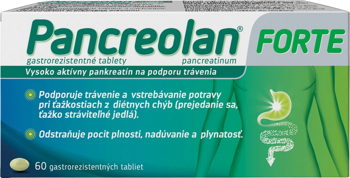 Pancreolan Forte obsahuje tráviace enzýmy, ktorých tvorba a uvoľňovanie viazne v dôsledku ochorenia pankreasu. Štiepi tuky, cukry a bielkoviny v prijatej potrave a tým zlepšuje trávenie. Je vhodný na liečbu detí od 3 rokov mladistvých a dospelých.