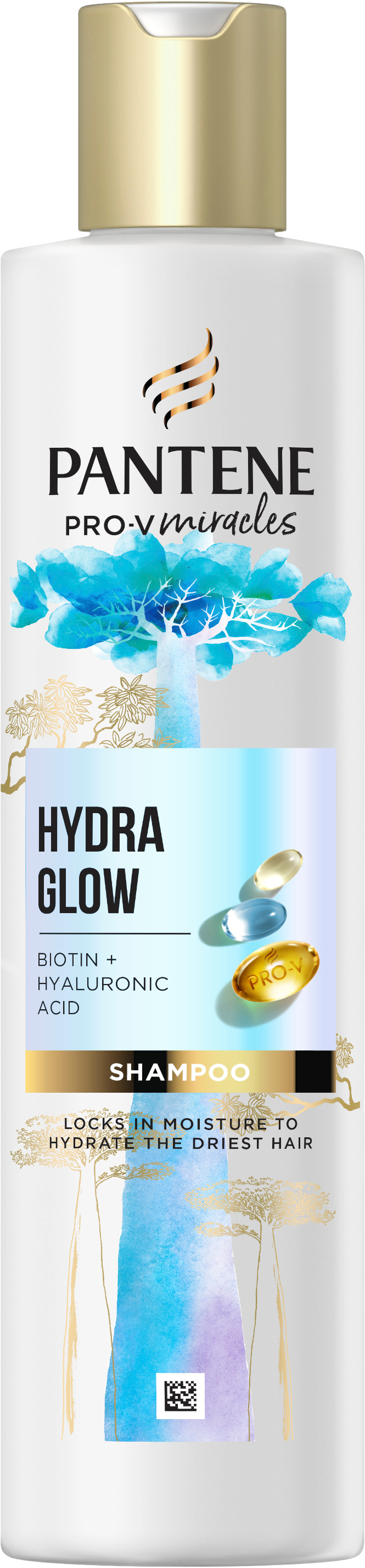 Šampón na vlasy Pantene PRO-V Miracles Hydra Glow je bohatý na živiny a pomáha pôsobiť proti krepovateniu vlasov. Naše zloženie Pro-V obohatené o biotín a kyselinu hyalurónovú uzamyká vlhkosť vo vnútri vlasov a hĺbkovo hydratuje chronicky suché a krepaté vlasy. Viac informácií