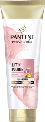 Pantene Pro-V Miracles Lift'N'Volume Thickening Conditioner, Kondicionér pre objem s Biotínom 160 mlVšetko o produkteDoplňujúce informácieHodnotenie produktuPANTENE PRO-V miracles kondicionér na vlasy Lift'N'Volume na zahustenie vlasov je obohatený o biotín, antioxidanty a najvyššiu koncentráciu Pro-V. Tento zázračný prípravok pomáha posilniť slabé a krepaté vlasy, aby boli odolné voči poškodeniu spôsobenému stylingom. Vlasy sú viditeľne silnejšie a plnšie už po prvom použití. Tento kondicionér bez obsahu silikónov obsahuje 3-krát viac PRO-V a je vhodný na každodenné používanie. Doprajte svojim vlasom tú najlepšiu starostlivosť s kondicionérom na vlasy PANTENE PRO-V Lift'N'Volume.