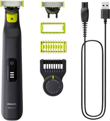 Zastrihávač Philips OneBlade Pro Face + Body zastriháva, tvaruje a holí fúzy všetkých dĺžok. K dispozícii je čepeľ na tvár a čepeľ na ochranu pokožky na telo. Prestaňte používať viacero nástrojov. OneBlade zvládne všetko.