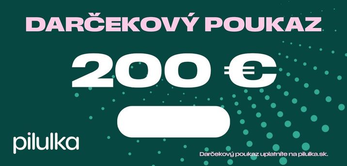 Elektronický darčekový poukaz v hodnote 200 €. Poukaz je možné využiť na všetok sortiment pilulka.sk. Viac informácií