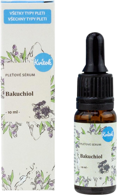 Kvitok Pleťové sérum - Bakuchiol - Seram na pleť - Bakuchiol 10 mlVšetko o produkteDoplňujúce informácieHodnotenie produktuV jednoduchosti je krása. Presvedčí vás o tom aj toto sérum, kde sa hlavná rola ujal bakuchiol - rastlinná alternatíva retinolu (vitamínu A). Bakuchiol stimuluje tvorbu kolagénu, zlepšuje tak elasticitu zrelé pleti, redukuje jemné vrásky a zpevňuje kontúry tváre. Ocení ho tiež aknézná pokožka, ktorú pomôže čistiť a urýchli jej hojenie. Aby sa bakuchiol dobre vstrebal, sprevádza ho olivový skvalán, ktorý zároveň tvorí na pleti ochranný film.