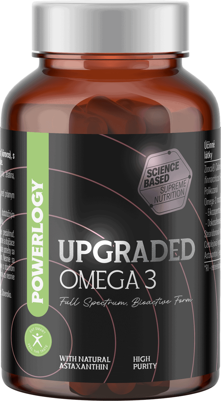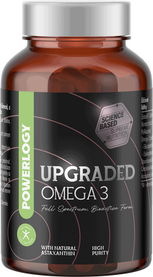 Powerlogy Upgraded Omega 3 je prémiový výživový doplnok s vysokým obsahom esenciálnych mastných kyselín EPA a DHA z čistého rybieho oleja. Pochádza z udržateľných zdrojov zo studených severských morí a prechádza procesom molekulárnej destilácie, ktorý zabezpečuje nulový obsah ťažkých kovov a kontaminantov.
