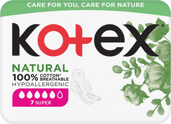 Vrchná vrstva hypoalergénnych vložiek Kotex® NATURAL je úplne šetrná k životnému prostrediu, je vytvorená bez použitia škodlivých látok, farbív a vonných látok, obsahuje iba bavlnu. Viac informácií