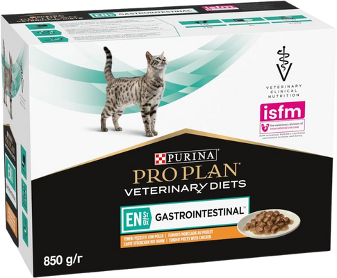 Purina VD Feline - EN St/Ox Gastroint. Chicken kapsička 10 x 85 gVšetko o produkteDoplňujúce informácieHodnotenie produktuFeline EN St/Ox Gastrointestinal je veľmi chutné a vysoko stráviteľné kompletné diétne veterinárne krmivo, ktoré pomáha zvládnuť gastrointestinálne a chronické ochorenie pečene (bez encefalopatie) u dospelých mačiek aj u mačiatok. Ochorenie čriev je často spojené s malabsorpciou a maldigesciou, preto diétne krmivo Feline EN St/Ox Gastrointestinal obsahuje vybrané a vysoko stráviteľné zložky, ktoré pomáhajú znižovať záťaž postihnutého čreva a minimalizovať vedľajšie reakcie tráviaceho traktu. Obmedzený počet zdrojov bielkovín pomáha minimalizovať riziko vzniku nepriaznivých reakcií na krmivo.
