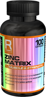 Reflex Nutrition Zinc Matrix, 1 x 100 kapsúlVšetko o produkteDoplňujúce informácieHodnotenie produktuHlavnou filozofiou všetkých produktov Reflex Nutrition je maximálna kvalita a čistota použitých surovín s minimom balastných aditív. Preto sa tiež použivá výhradne forma kapsúl. Značka Reflex Nutrition nevyužíva formu lacnejších tabliet z dôvodu vysokého obsahu balastných „spojív a lepidiel“, ktoré môžu vo vysokom počte prípadov tvoriť až 50 % tablety.