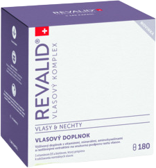 Revalid® Hair Complex je najmodernejšia kombinácia aktívnych zložiek pre starostlivosť o vlasy a nechty. Obsahuje aminokyseliny DL-methionín a L-cystín, ktoré sú kľúčové pri tvorbe keratínu, základnej stavebnej látky vlasov a nechtov. Výťažky z prosa, pšeničných klíčkov a kvasníc sú bohatým zdrojom vitamínov a minerálov. Obsiahnutý zinok a biotín prispievajú k normálnemu stavu vlasov.