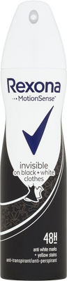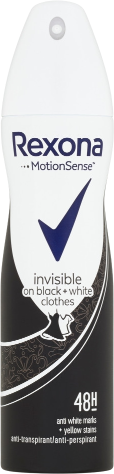 Rexona Antiperspirant Invisible Black+White 150 mlVšetko o produkteDoplňujúce informácieHodnotenie produktuAntiperspirant Rexona Invisible Black + White bol špeciálne vyvinutý tak, aby tvoje oblečenie zostalo krásne a bez škvŕn. Napomáha redukovať biele stopy na čiernom a žlté škvrny na bielom oblečení. Môžeš tak vyzerať skvele po celý deň.