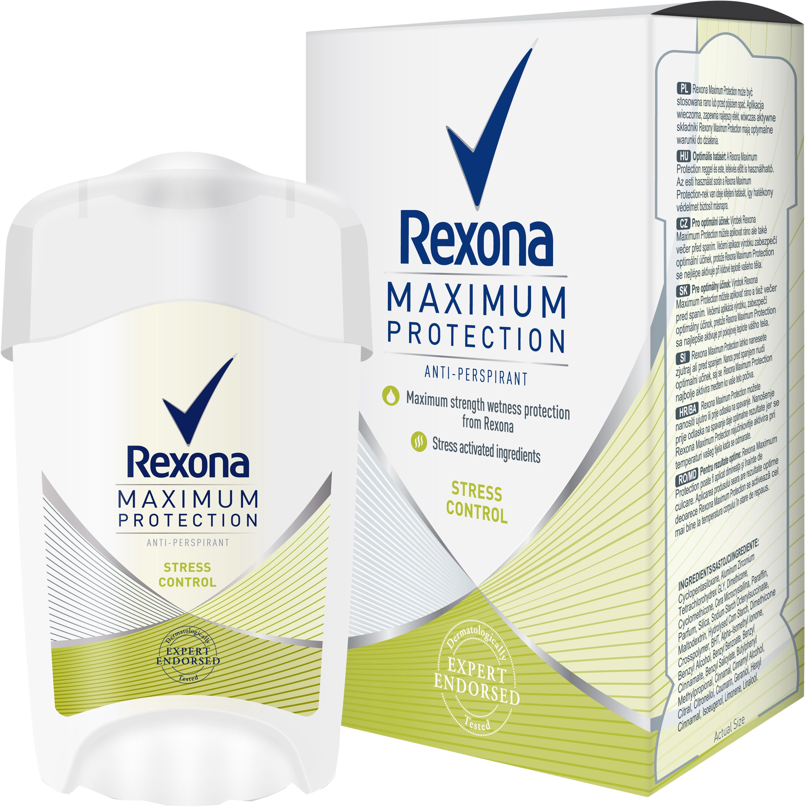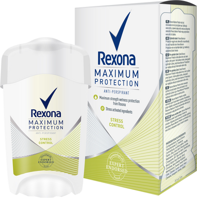 Rexona Maximum Protection Stress Control 45 mlVšetko o produkteDoplňujúce informácieHodnotenie produktuRexona Maximum Protection poskytuje našu najúčinnejšiu, dlhotrvajúcu ochranu proti poteniu a zápachu, napriek tomu je dostatočne jemná aby bola vhodná na každodenné použitie. Zložky aktivované stresom, zabezpečujú preukázanú ochranu proti poteniu spôsobenému stresom.