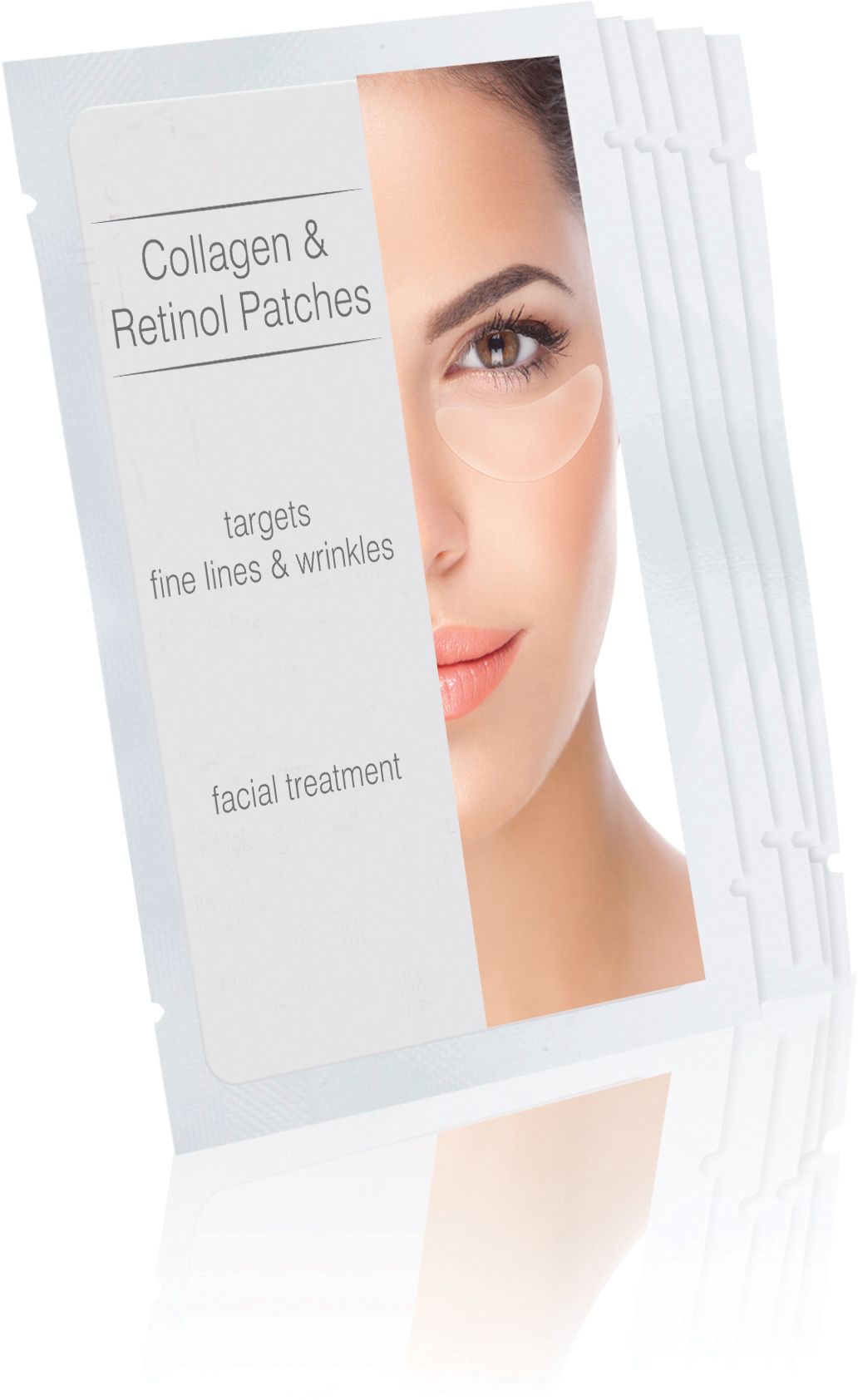 - Kolagénovo-retinolové gélové náplasti obsahujú kladne nabitý kolagén a retinol ako činiteľ proti vráskam a veku