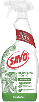 Samostatný univerzálny dezinfekčný čistiaci sprej s praktickým rozprašovačom je vhodný do domácnosti aj na pracovisko. Spoľahlivo sa stará takmer o všetky povrchy (nábytok, kuchyňa, kúpeľňa, dvere atď.). Stačí naniesť na povrch, nechať pôsobiť niekoľko sekúnd a nakoniec zotrieť vlhkou handričkou. Savo univerzálny dezinfekčný sprej poskytuje antibakteriálnu ochranu až na 24 hodín! Viac informácií