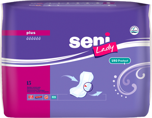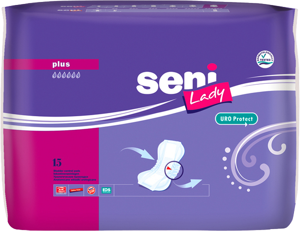 - Absorpčná schopnosť urologických vložiek Seni Lady Plus je mnohonásobne vyššia ako u bežných vložiek vďaka použitiu superabsorbentu, ktorý viaže tekutinu a neutralizuje nepríjemný zápach, čím zabezpečuje úplnú bezpečnosť ženy pri úniku moču
