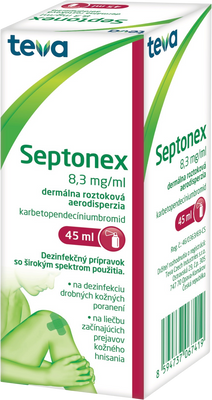 Pozrite tiež ostatné produkty značky Septonex, ktoré sú v kategóriách Dezinfekcia kože, Dermatológia a Zdravie a lieky. Septonex aerosol 45 ml je registrovaný v databáze ŠUKL pod kódom 92414. Ak si nie ste istí výberom tohto produktu, inšpirujte sa v kategórii Dezinfekcia kože.
